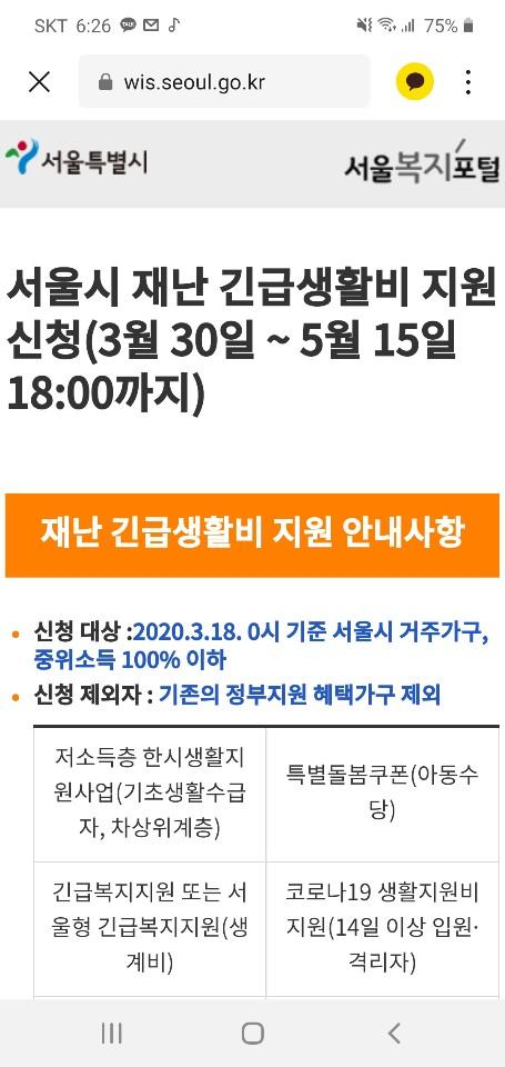 거주 기준 : 2020년 3월 18일 0시 기준으로 서울시 거주 상태여야합니다.