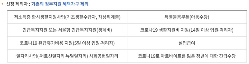 ※아래와 같이 기존 정부 지원 혜택을 받고 있는 사람들은 제외입니다.